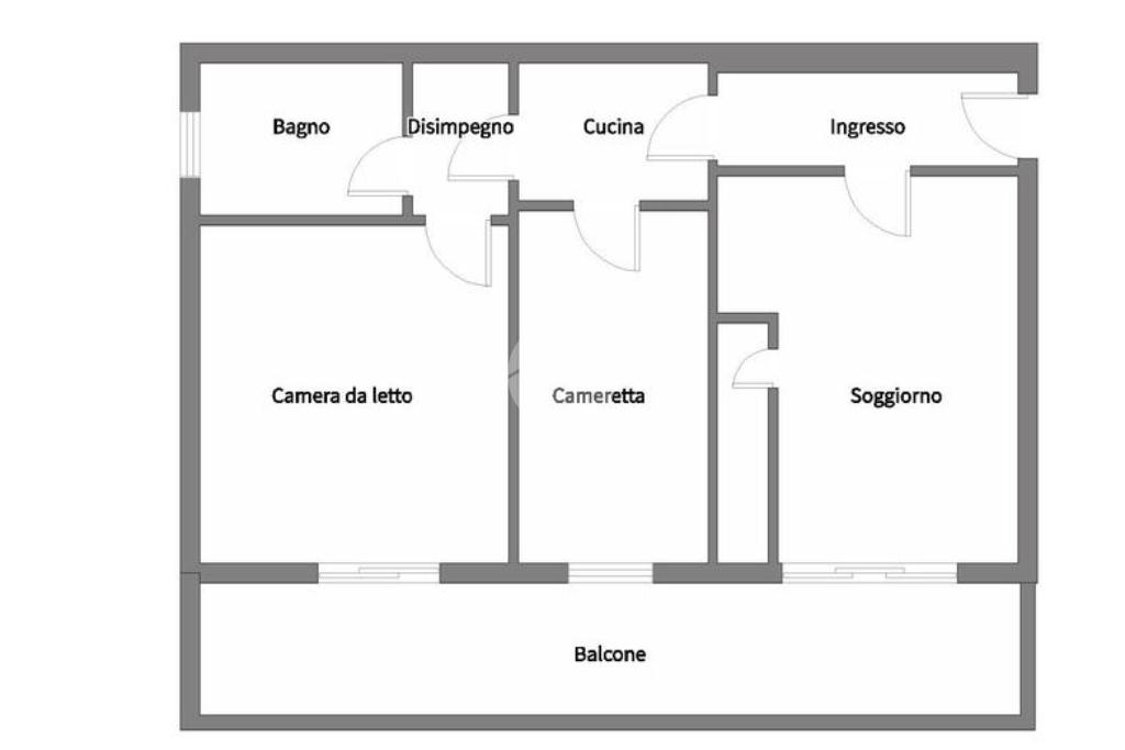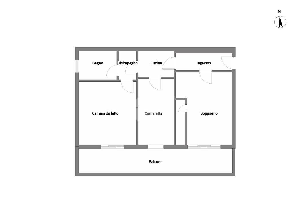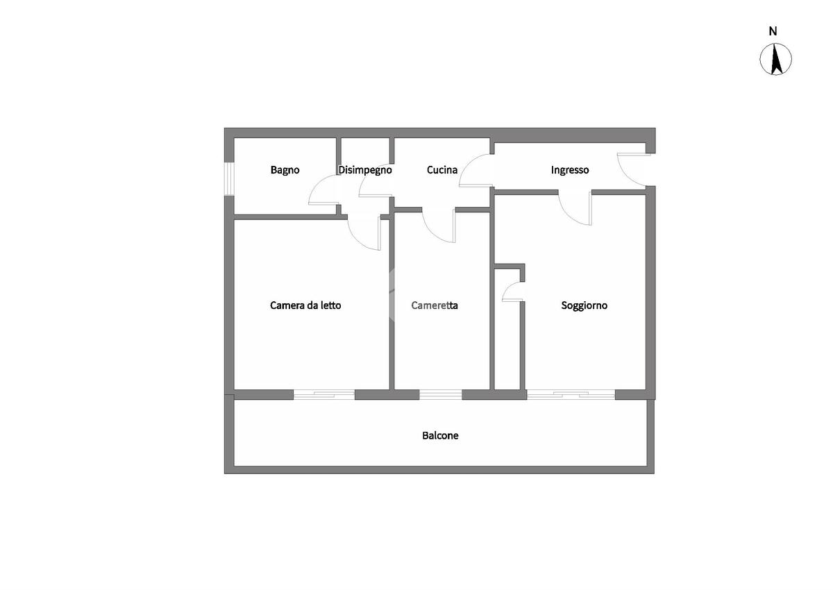 TRILOCALE situato al primo piano e composto da ingresso, soggiorno, cucina, camera da letto matrimoniale, cameretta, 2 bagni (di cui uno finestrato) e comodo balcone abitabile.