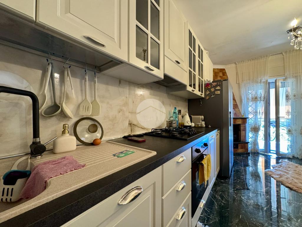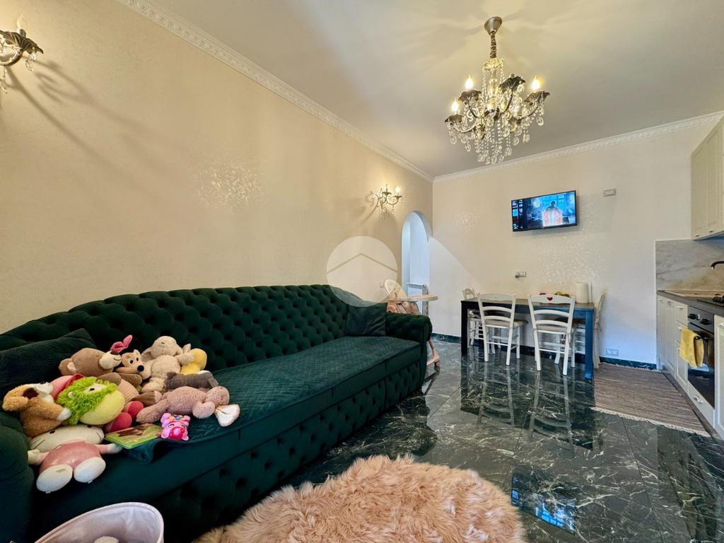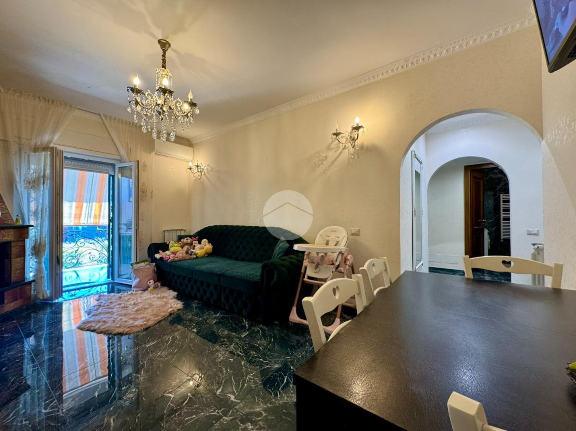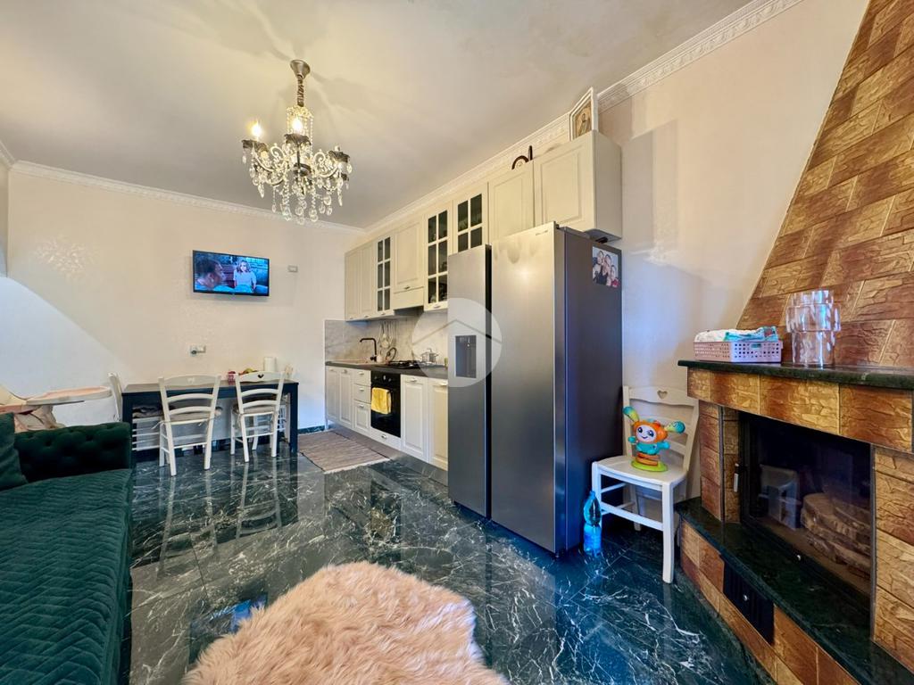 TRILOCALE situato al primo piano e composto da soggiorno con cucina a vista, camera da letto matrimoniale, cameretta, bagno, disimpegno e balcone terrazzato.