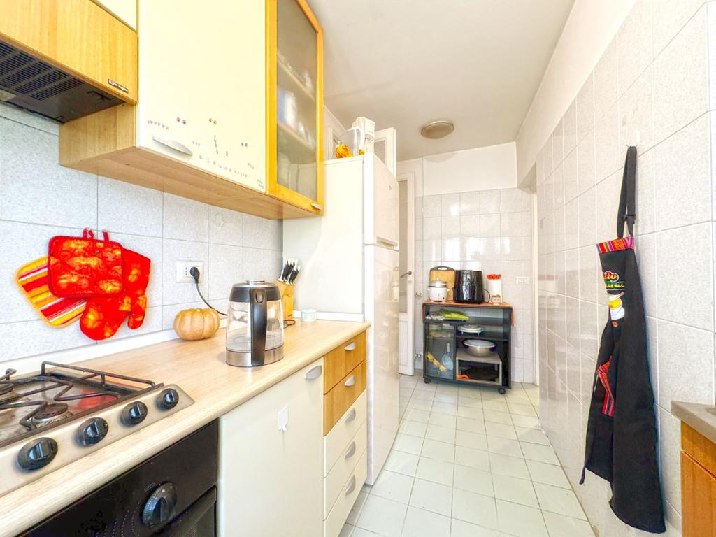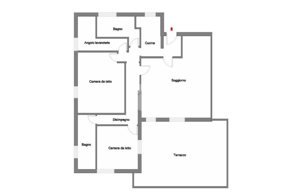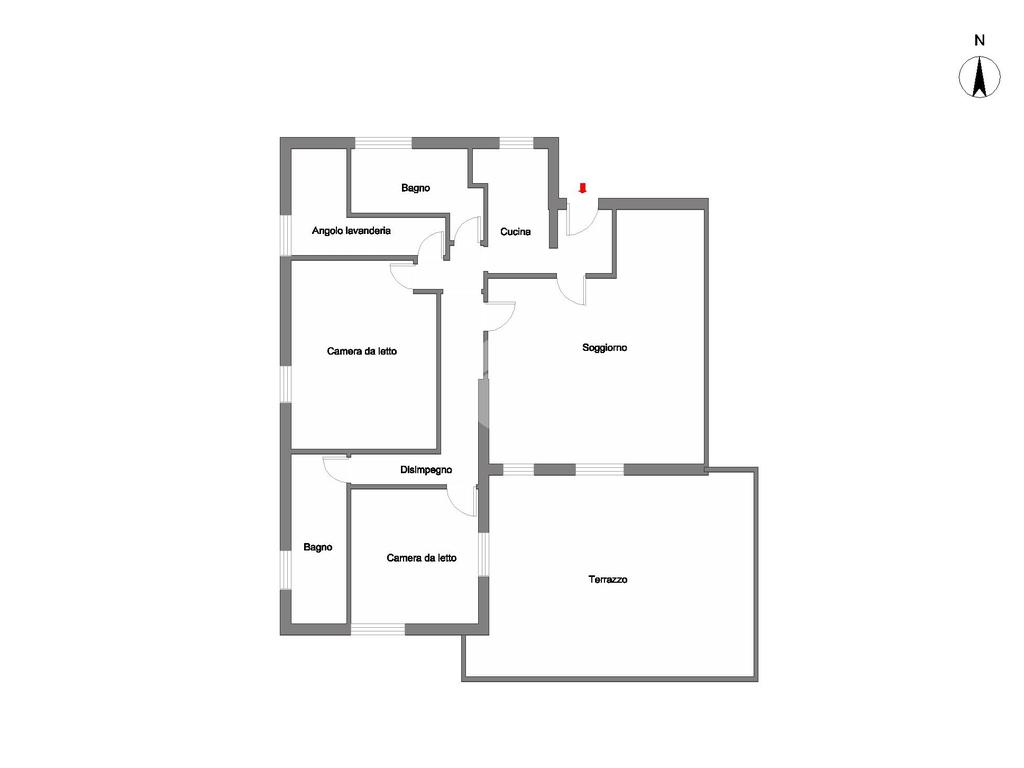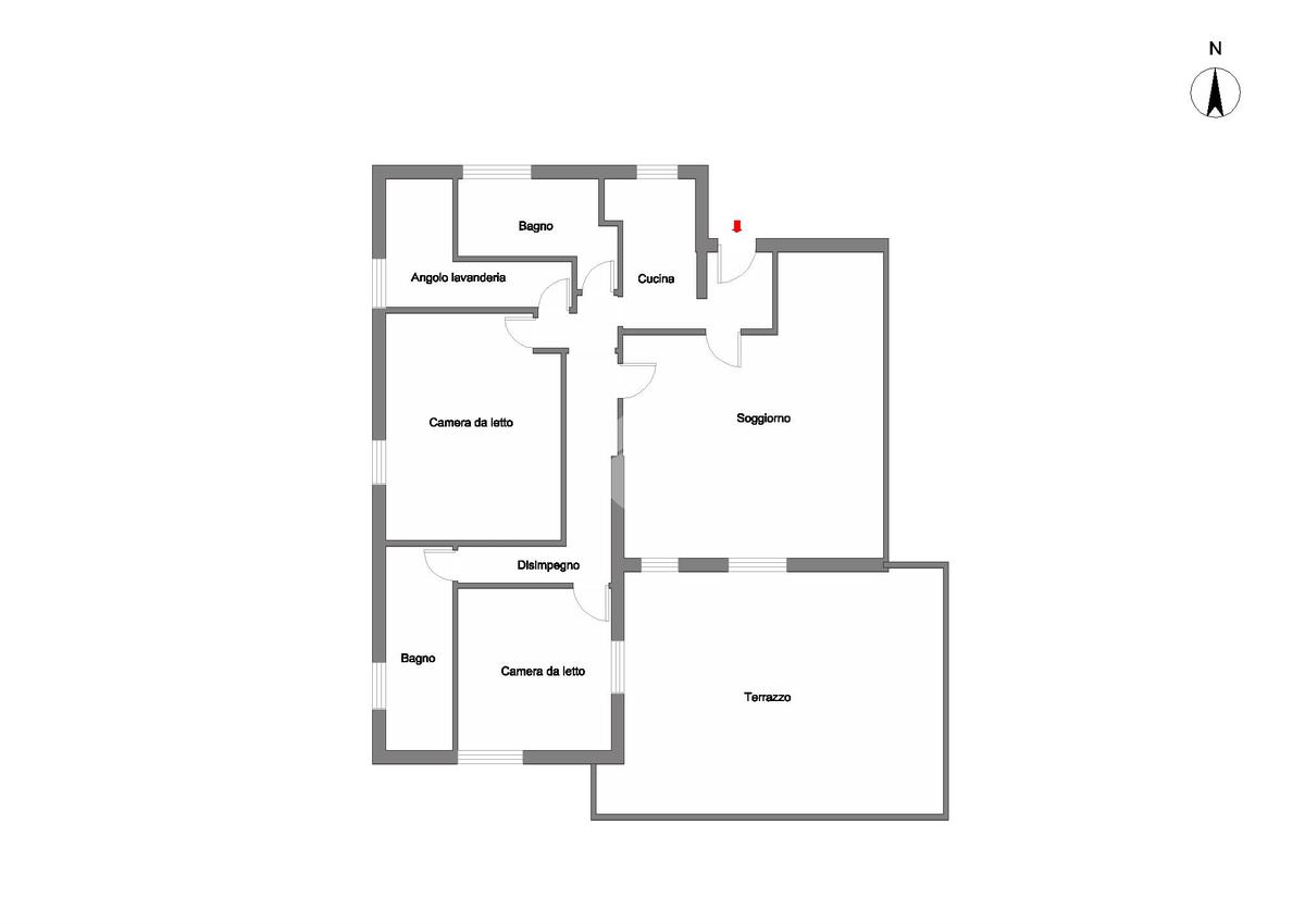 TRILOCALE situato al secondo piano e composto da ingresso, soggiorno, cucina, 2 camere da letto, 2 bagni con finestra, locale lavanderia, corridoio ed ampio terrazzo abitabile