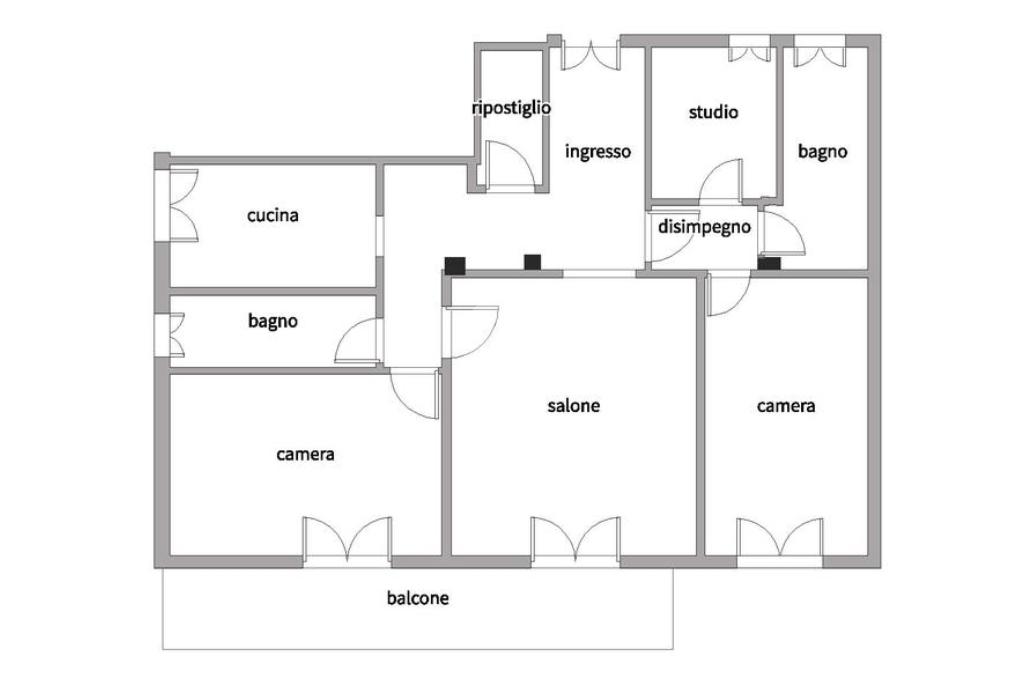 QUADRILOCALE situato all'ottavo ed ULTIMO piano e composto da ingresso, salone, cucina abitabile, 2 camere da letto, studio, due bagni con finestra, comodo balcone con affaccio libero e posto auto coperto raggiungibile anche con ascensore.