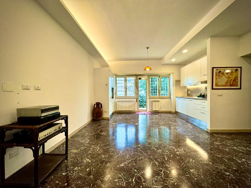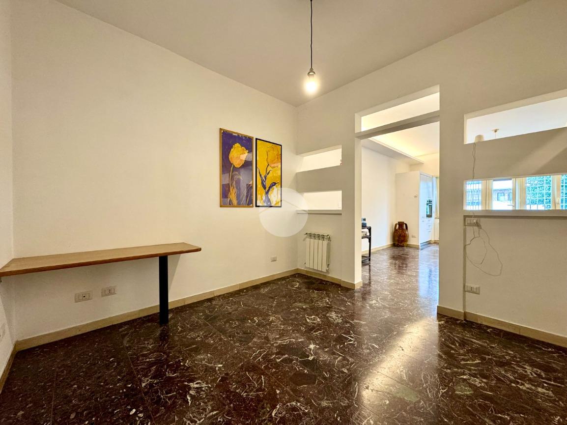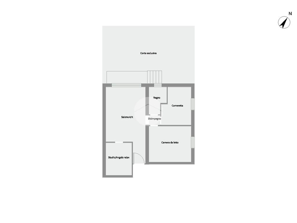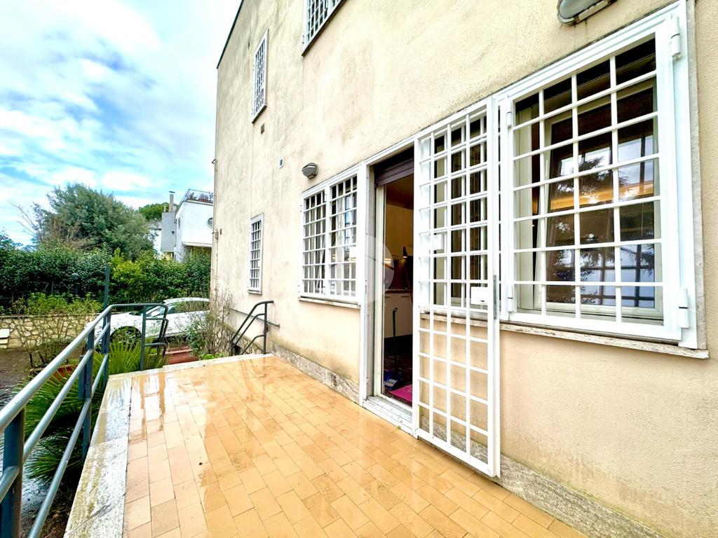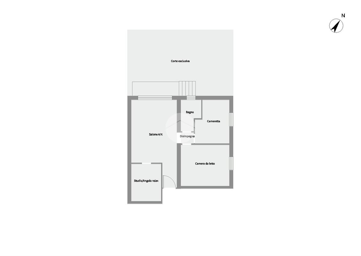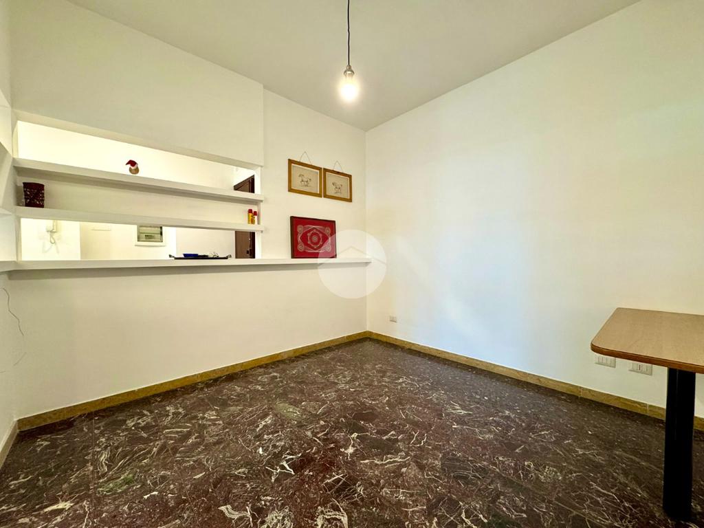 TRILOCALE situato al piano rialzato e composto da ingresso, salone con cucina a vista, camera da letto matrimoniale, cameretta, studio/angolo relax, bagno con finestra, disimpegno, comodo spazio esterno, cantina, locale C/6 adibito a magazzino e possibilità di parcheggio all'interno.
