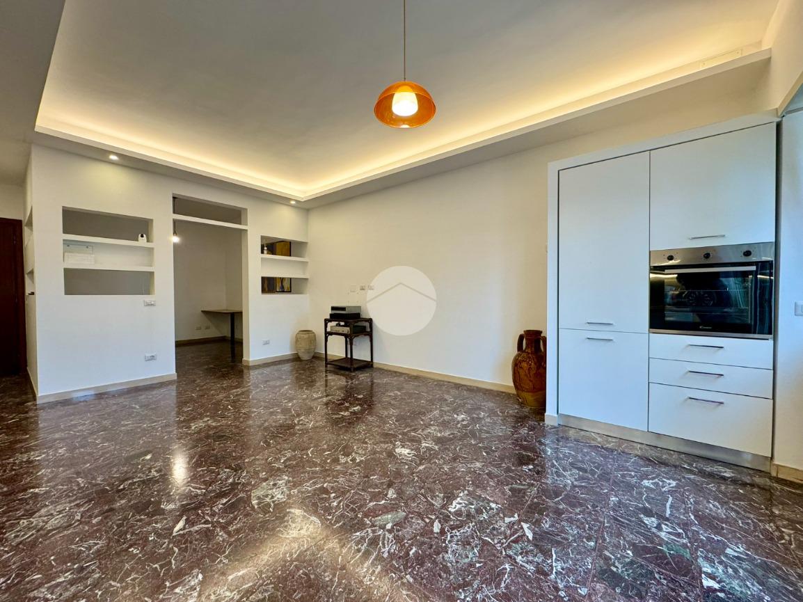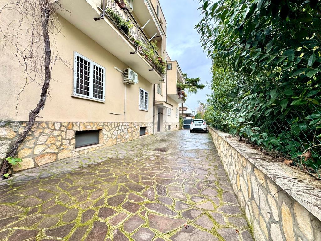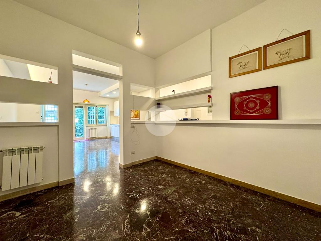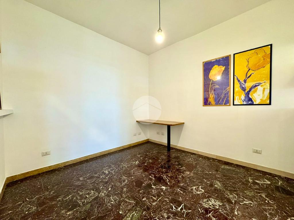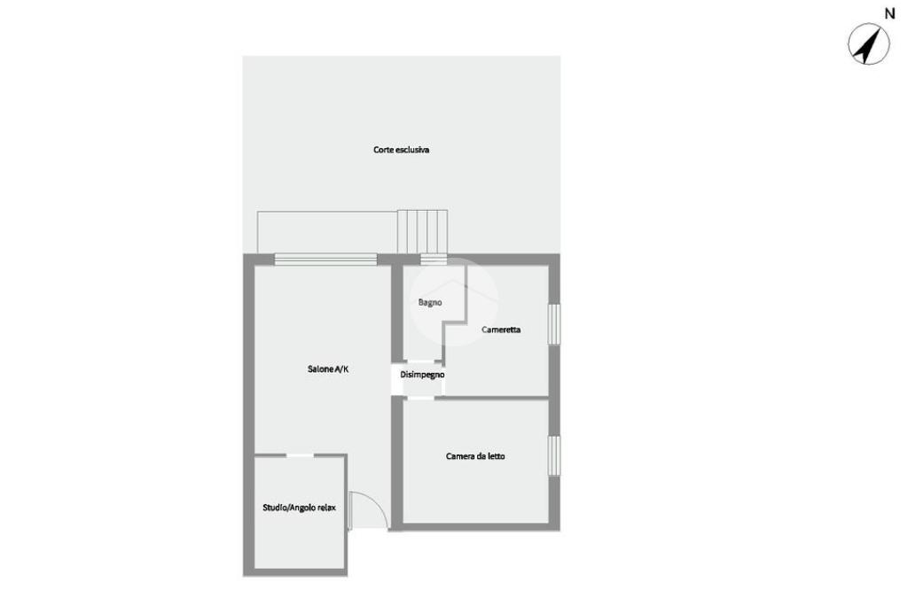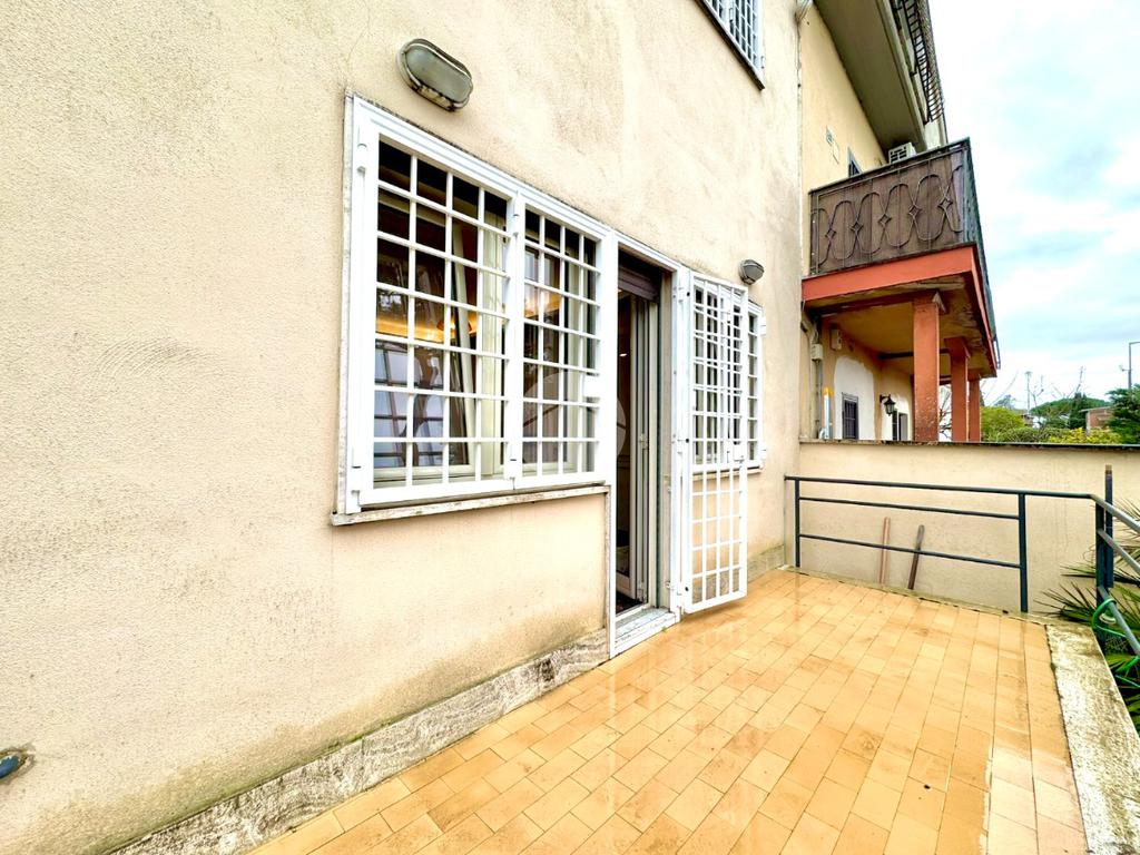 TRILOCALE situato al piano rialzato e composto da ingresso, salone con cucina a vista, camera da letto matrimoniale, cameretta, studio/angolo relax, bagno con finestra, disimpegno, comodo spazio esterno, cantina, locale C/6 adibito a magazzino e possibilità di parcheggio all'interno.