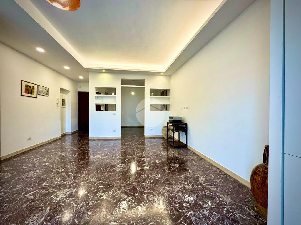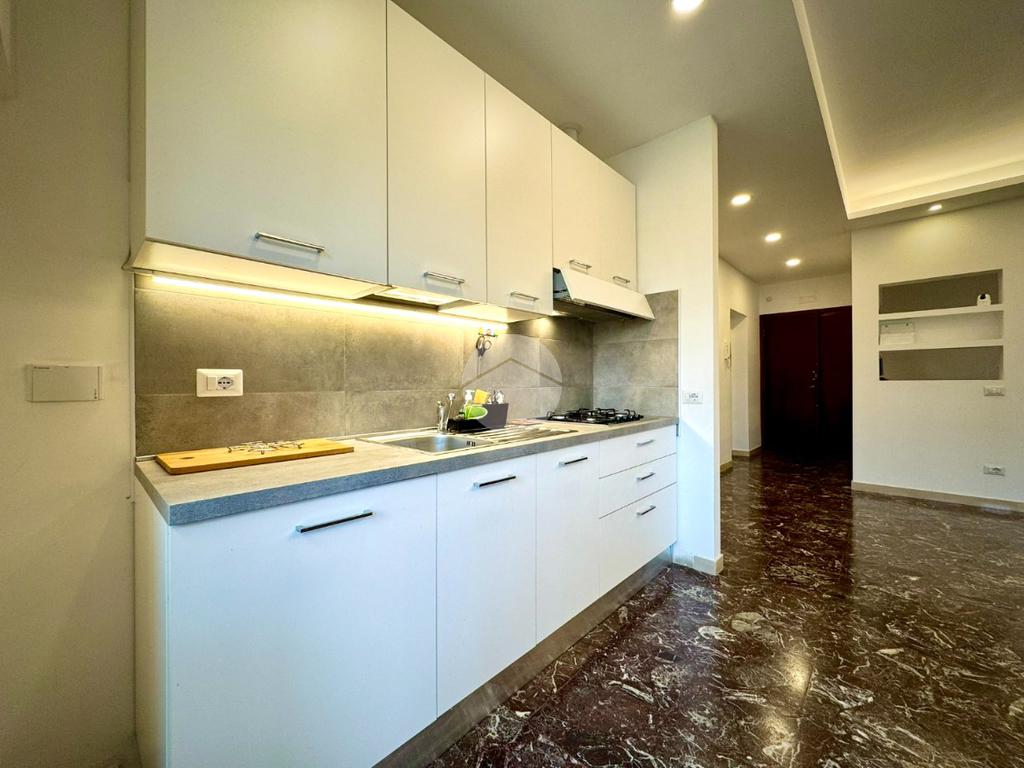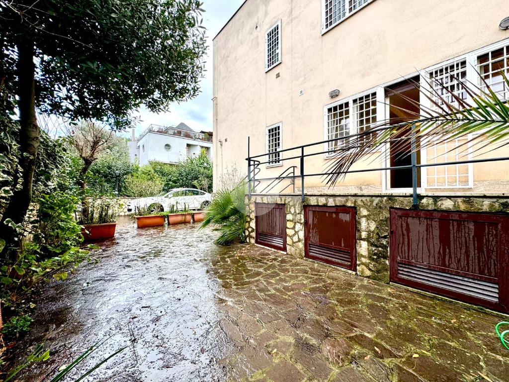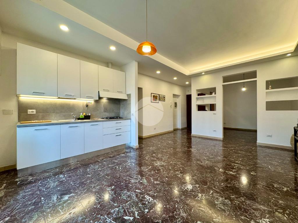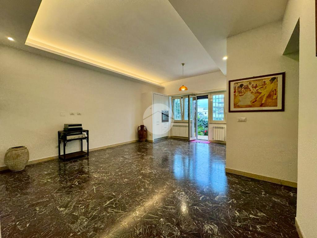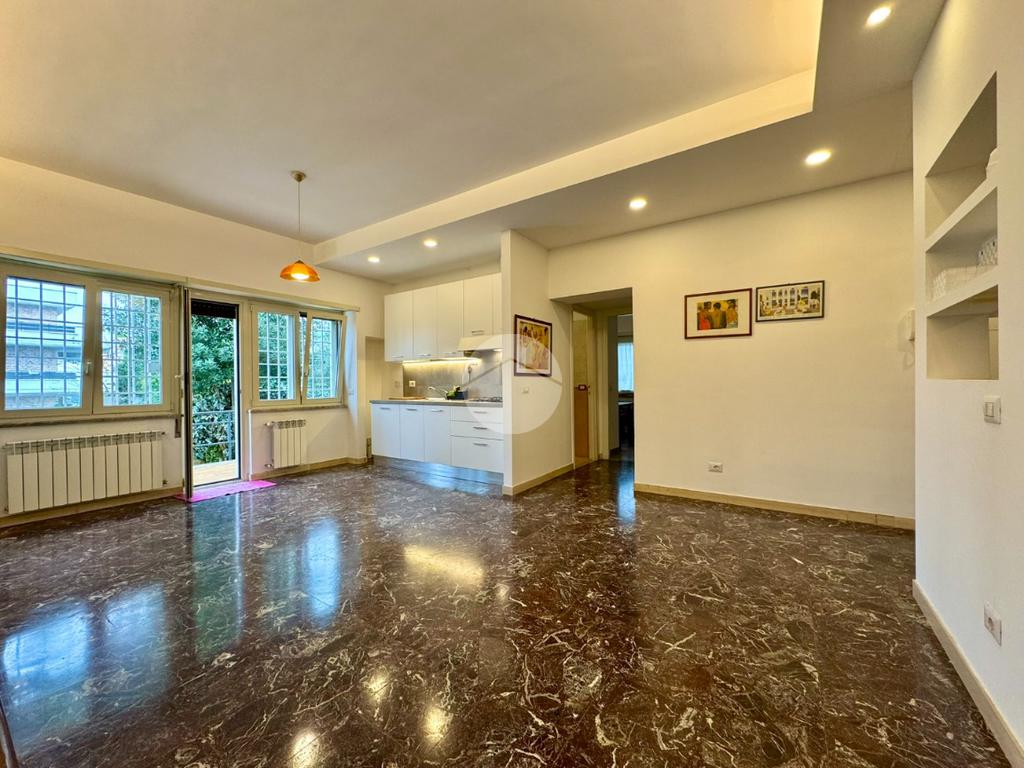 TRILOCALE situato al piano rialzato e composto da ingresso, salone con cucina a vista, camera da letto matrimoniale, cameretta, studio/angolo relax, bagno con finestra, disimpegno, comodo spazio esterno, cantina, locale C/6 adibito a magazzino e possibilità di parcheggio all'interno.